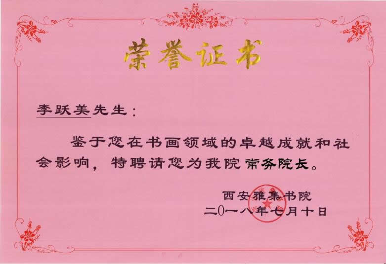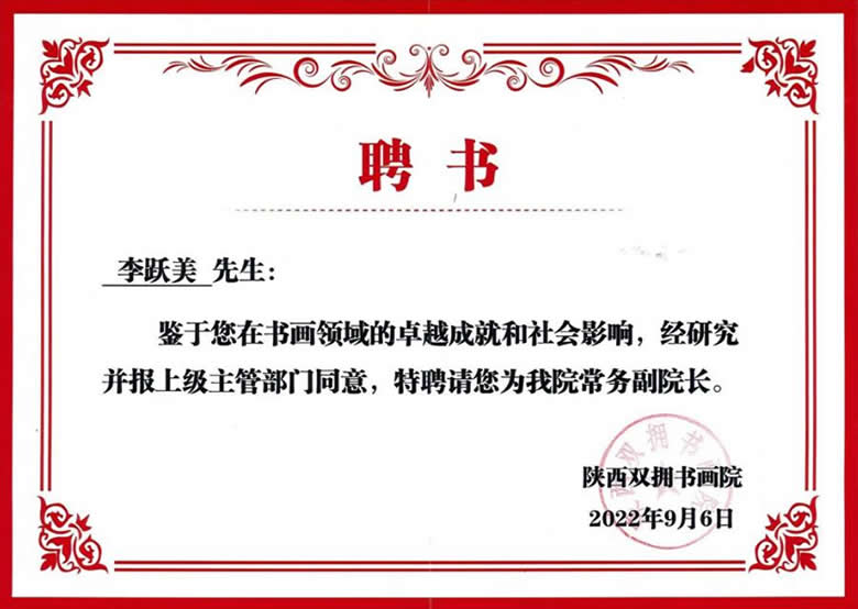字如其人。李跃美书法老师的书法作品格调高雅,个性鲜明,神高意远,充满着诗意、灵性和时代的气息,动中见流水,行中观蛟龙,行云流水一气呵成,纵情抒发了他对生命对人生对历史对现实对生于斯养于斯的炎黄沃土的钟爱。他的书法创作已经形成了自己独特的风格,展现出生活芬芳的情愫和高雅的审美情趣,以及对人生的感悟和思考,看书法就如见人品,先生对朋友都如兄弟一般爱护,尽心尽力力所能及帮助有困难的朋友,人生得一知己,足矣,我能与先生相识成为往年之交实属上辈子修来的福分,在西安这块神奇的土地上有缘与先生相识相交,并能学习书法创作,感悟书法寓意,在纷扰的世间,能够慎独于心,坚守自我,实乃人生一大幸事。